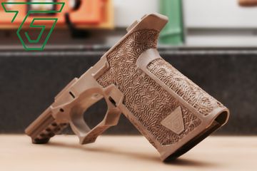 Recessed borders, grip design of choice, and stipple texture of choice. Includes accelerator cuts upon request.
